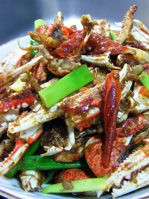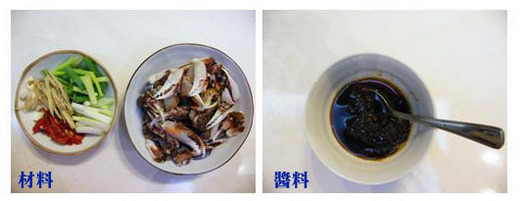 材 料:蟹腳、葱段、大蒜、薑片、辣椒、九層塔