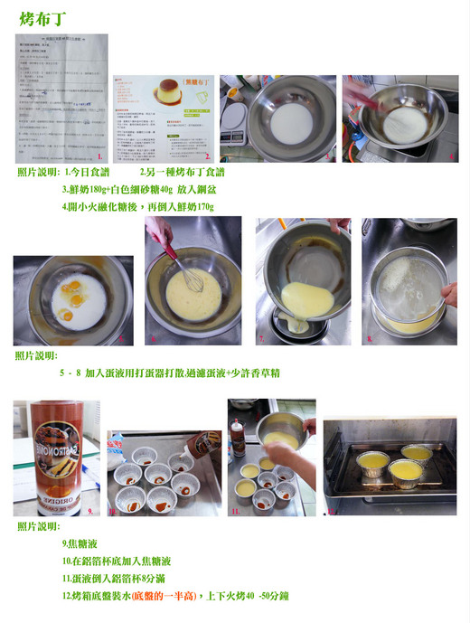 1.烤布丁準備材料很快,在水蒸烤的過程比較久(水要看著 不要乾掉)
