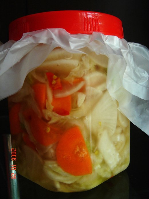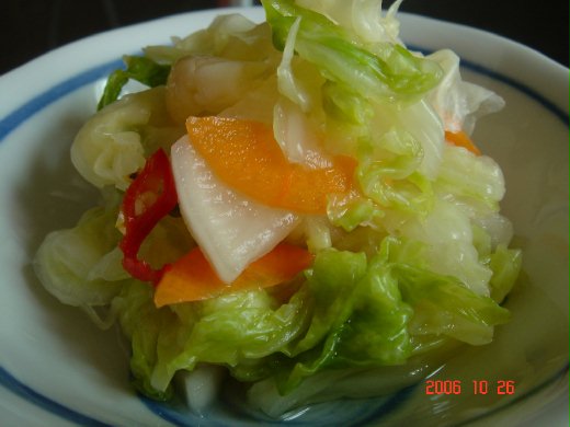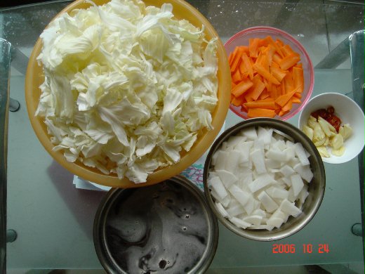 材 料:高麗菜二顆、胡蘿蔔一條、白菜頭一條、大蒜仁15顆