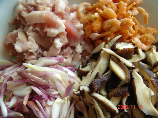 材 料: 長米3杯(量米杯)、紅蔥頭20-30顆切片、