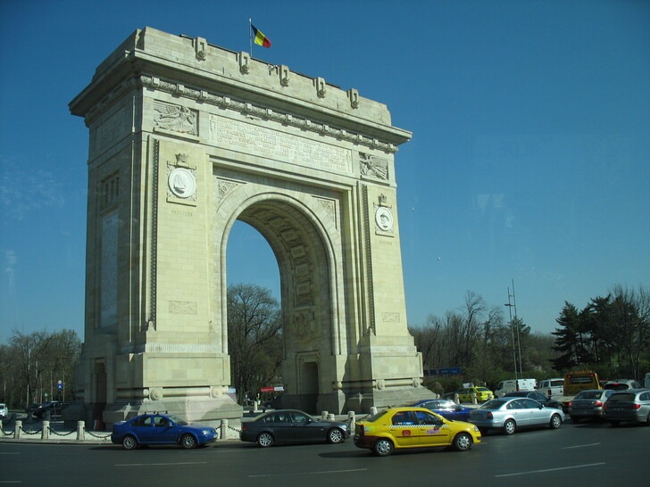 。。。布加勒斯特的咖啡店。。與凱旋門。。。