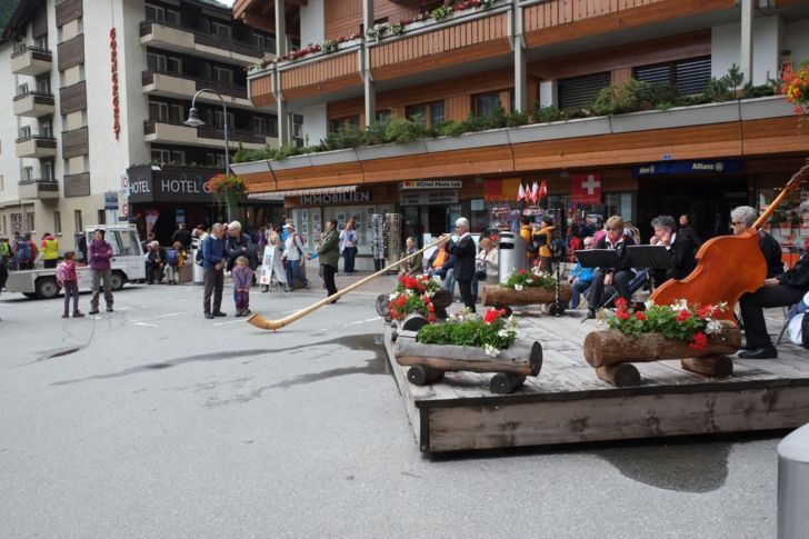 瑞士。策馬特車站廣場的樂隊。參予演出的都是白髮長輩。為促進當地旅遊業。盡心盡力!