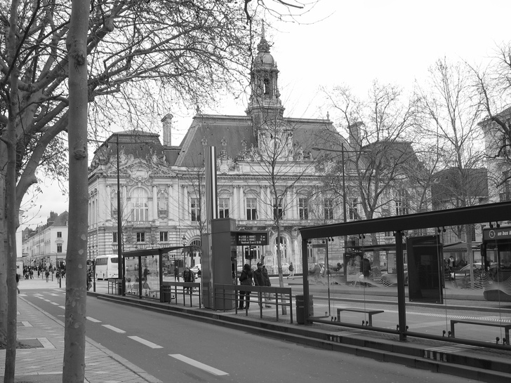 法國市政廳的標準。制式建築外觀。。相機收。取時無意間觸碰到轉鈕。變成黑白。