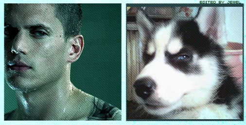 貼張他跟哈士奇的比較照片,真不知是哪位網友的創意,"哈士奇"是我最愛的狗狗呢!
