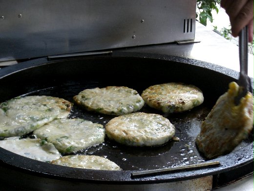 這的招牌當然是卜肉及炒三星葱囉,卜肉就是炸里肌肉,不過有用特別的方法油炸,使得肉質不同炸過的豬肉一樣硬硬的,既便炸過還保留豬肉的口感,整盤除了卜肉之外還有蔬菜也裹粉下去炸,其實就像是日本料理的天婦羅,這個我超愛的比卜肉還愛,因為我們點了兩盤卜肉,很想跟店家講下一盤我只要蔬菜的不要卜肉,不過怕被共榮圈K,呵呵!