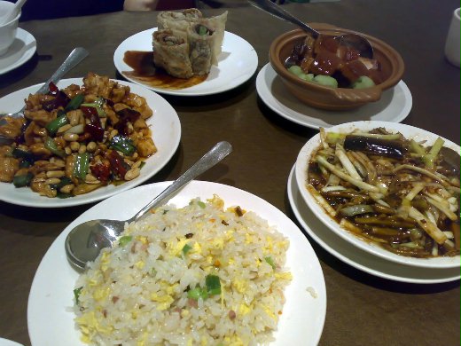 它的「東坡肉」我一直都覺的不錯吃,雖然看起來很肥但吃起來不油膩,平常不太吃肥肉的我,都可以接受。「牛肉斤餅」真的是超好吃的,餅皮包著牛肉及蔥段再加上它的醬汁,結果阿德只來的及吃到一個,其餘都進了我的五臟廟,不過不愛吃蔥的朋友就不建議了,因它的蔥段放的還挺多的,所以味道很重,寫到這----好像愛吃韭菜的人通常都愛吃蔥哦?「炒鱔糊」是第三名,不過通常這道菜都會跟韭黃一起搭配,韭黃我就沒這麼愛了,鱔魚倒還不錯吃,很下飯。「宮保雞丁」就沒啥特別了,那個「楊州炒飯」很難吃,飯濕濕的沒炒飯的口感,直是一大敗筆,不過總括來講,還算是好吃的,價格還算實惠啦!