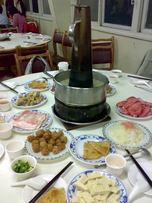 之前一直聽說台電的酸菜白肉鍋便宜又好吃,所以就打電話去預約了,打了電話才發現,位置己排到一個月之後了,不然就要去現場排隊,但它的營業時間只到晚上八點,這樣一個晚上每桌只做一批客人吧,我想,所以一個月就一個月囉,確定後,阿伯操著外省腔很大聲的說不可以遲到哦!若到時遲到有人在門口等那位子就直接給他們了。像我們一般去餐廳預約時大多都有十分鐘的緩衝時間,所以我就問了那有沒有緩衝時間,沒想到阿伯音量就變大了,什麼緩衝時間呀,六點就是六點呀,過了就沒有了,那你到底要不要預約呀,你自己要想清楚哦!哇…沒錯外省人就是這個調調,跟我老爸一個樣,連忙說當然要訂囉,勿勿忙忙就將電話掛了。
