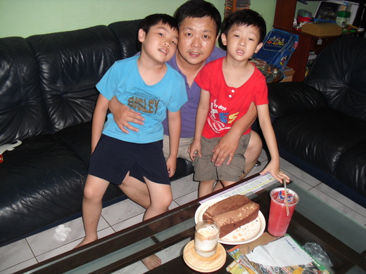 簡單的蛋糕,加上同事送的一杯西瓜汁還有精油燭檯, 成就了把拔的生日饗宴.容易滿足的把拔可開心的不得了,老公祝你事事順心喔.......