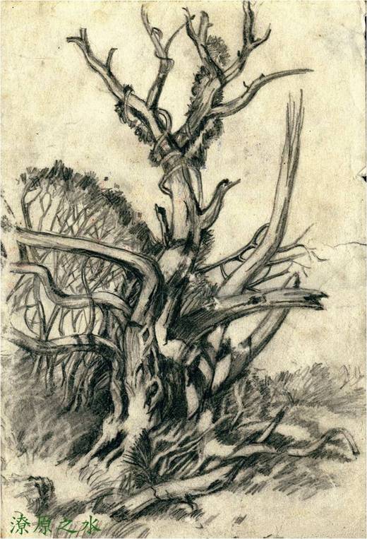 枯槁的老橡樹靜謐的屹立在蒼鬱的草原中