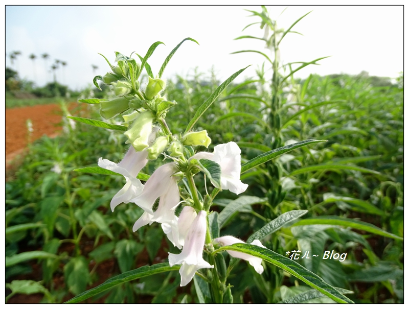 炎夏行經台地賞百合,路旁見到一畝畝白色花田,粉白「芝麻花」煞是好看。