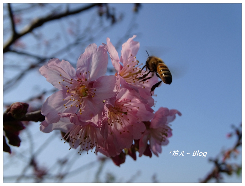「香水櫻」為新品種的櫻花,花朵散發出淡淡的香味,會吸引蜂蝶採蜜。