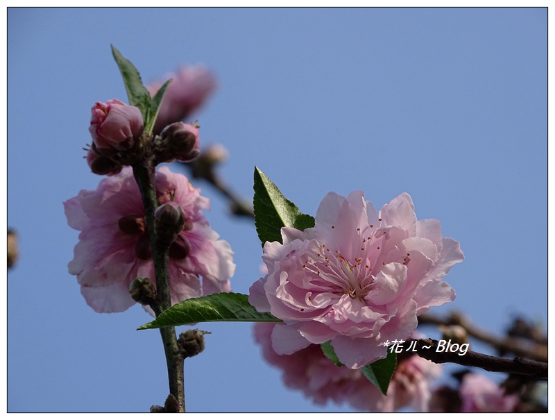 「碧桃」碩大花朵美豔動人,它是觀賞用的桃花,其花瓣為重瓣。