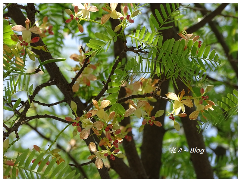 七月份是酸豆花開的季節,炎夏前往文創園區賞花,綠葉中綻放出橙黃色小斑花,非常清秀美麗。「酸豆」易見於亞洲寺廟或校園,它皆作為綠化用途。成熟果實像似一顆顆「落花生」掛於樹梢。「台中文創園區」近台中火車站步行即可,園區內假日藝文展覽活動多,是處親子同遊的好景點。