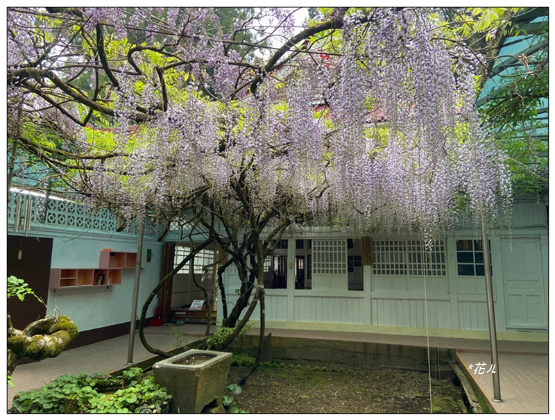 此處的紫藤移自於「舊沼平車站」,藤根有60幾年,白紫的花色清秀素雅。