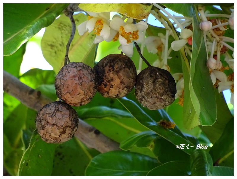 「瓊崖海棠」為金絲桃科胡桐屬,別名稱之:胡桐、紅厚殼、君子樹、海棠果、akiyarau(排灣語)。