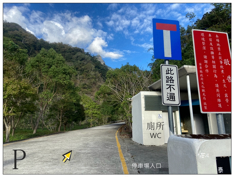 < 泰安溫泉停車場1K=>水雲吊橋.2K=>水雲瀑布叉路 >