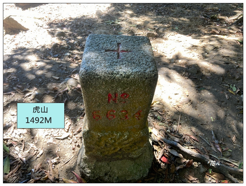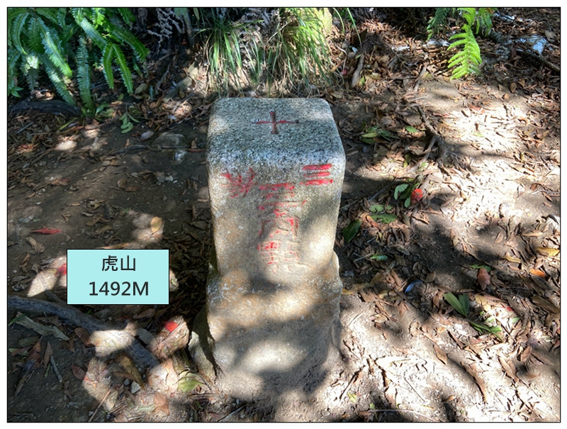 海拔高1492公尺,有座三等三角點6634號基石,峰頂展望極佳。