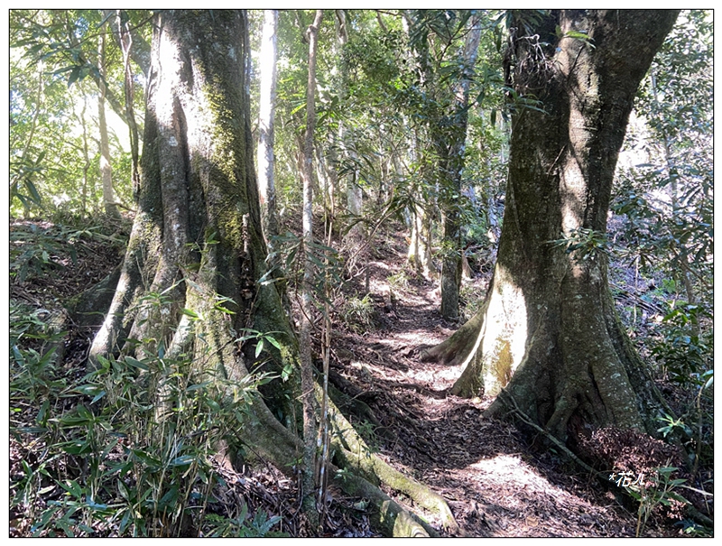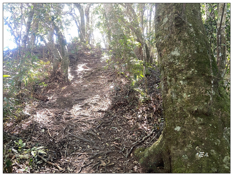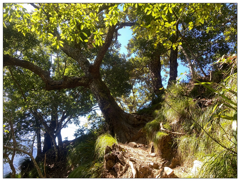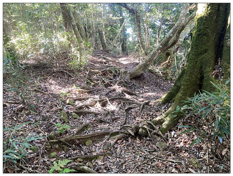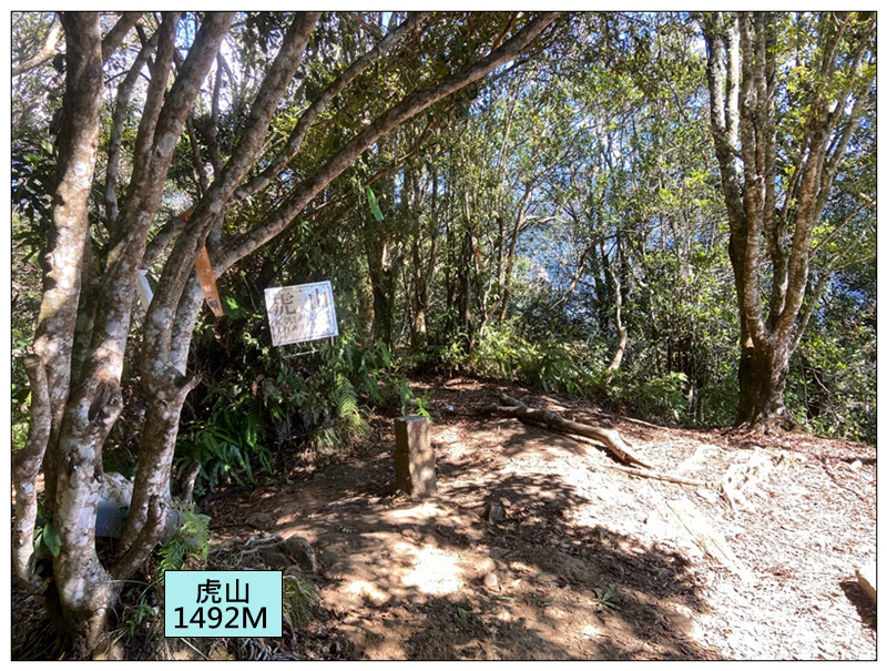 至稜線叉路取左往虎山,平緩稜線山徑好走,