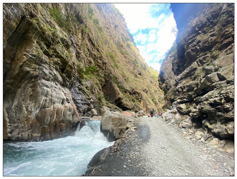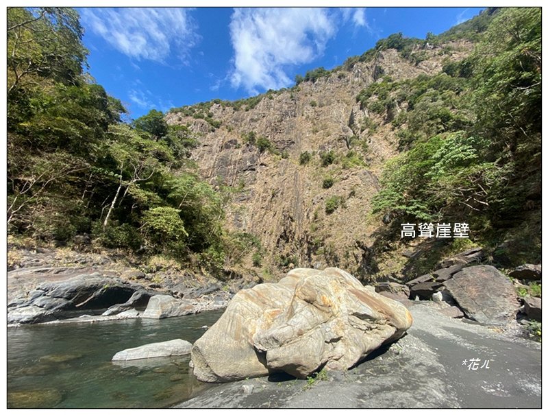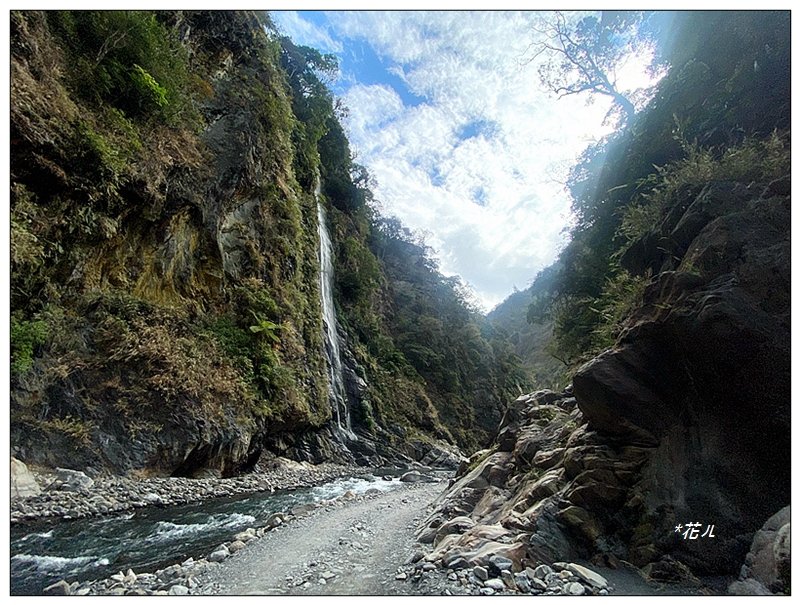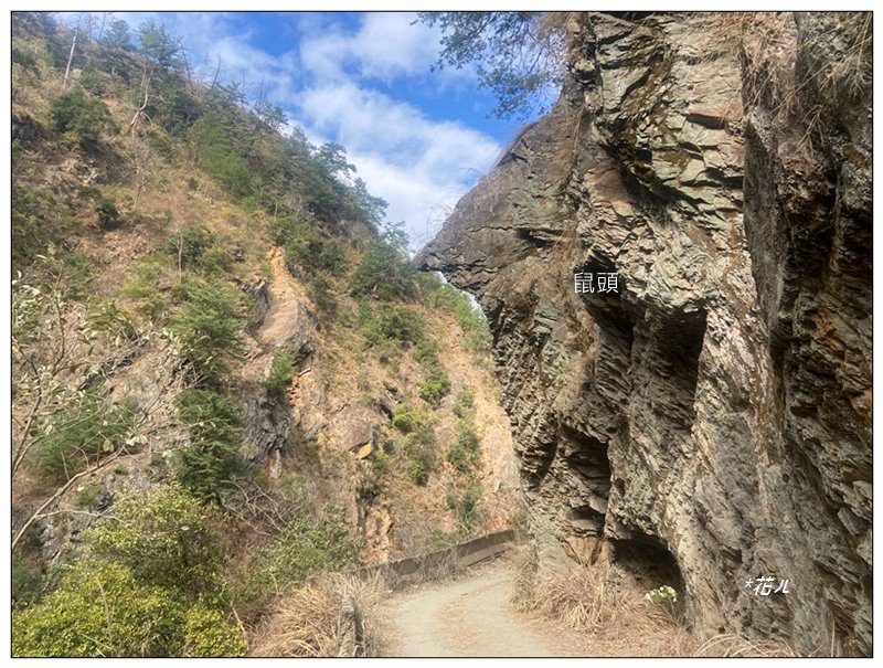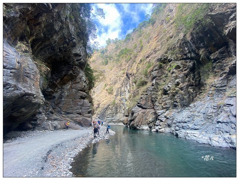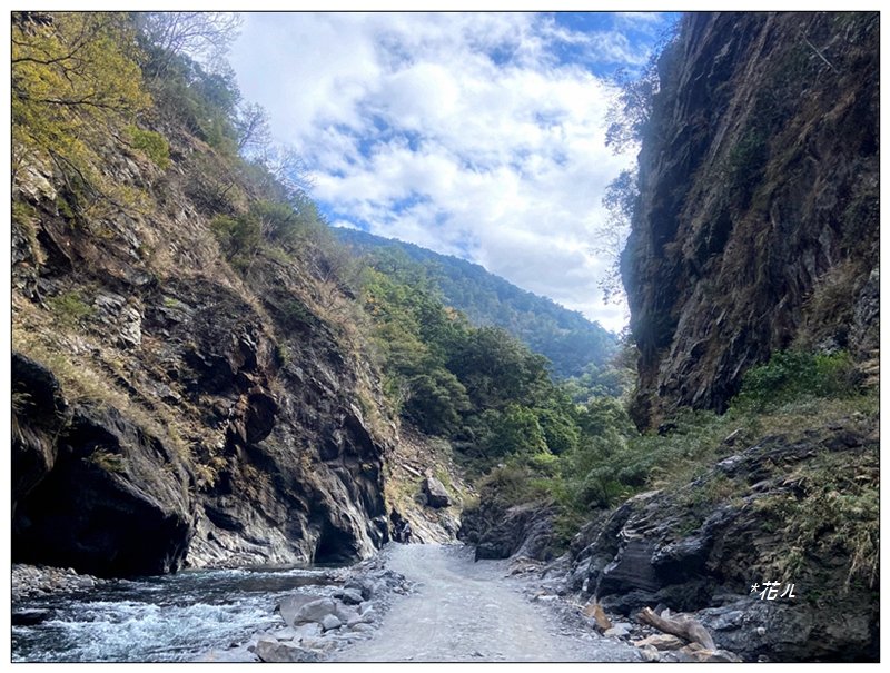 溪旁路徑轉為平緩,注意崖旁落石,
