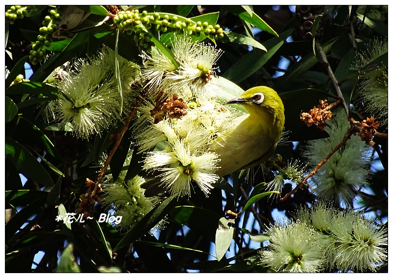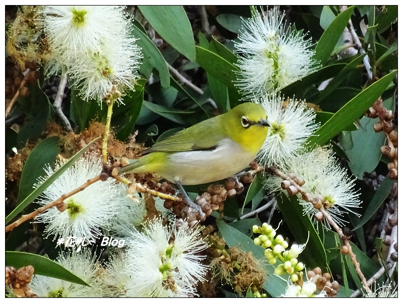 綠繡眼鳥成群穿梭覓食於「白千層」花間