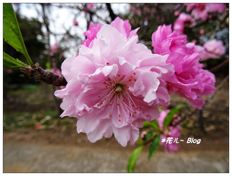 晚開日本品種「櫻桃花」,看起來似櫻似梅。