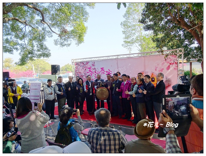 「花ㄦ祝福 各位格友 春節愉快」,活動現場有二胡演奏及玫瑰花贈送賞櫻情侶(情人節)。