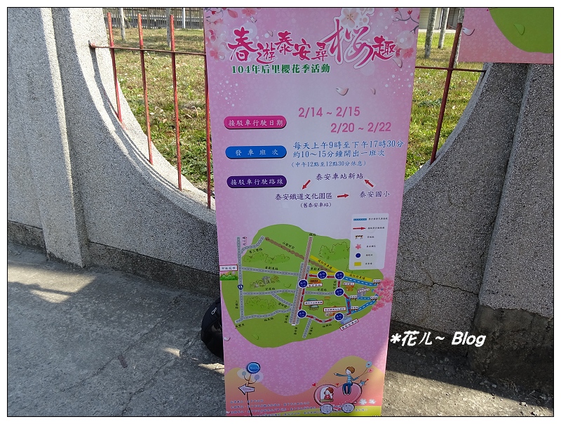 櫻花季活動名稱為「春遊泰安尋櫻趣」於2/14~2/15、2/20~2/22有免費接駁公車。