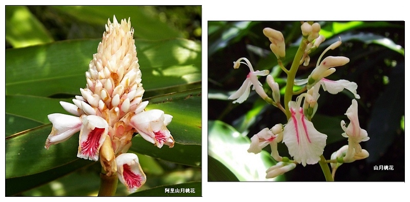 五月山徑路旁常見它的花豔,穗串潔白的花姿宛如少女臉上的胭脂。它是夏日最美的野花,讓人不逕哼唱一曲月桃花...「一處一處開滿月桃花、遠遠近近都是月桃花、採一朵花來襟上插、月桃花呀是奇葩 是奇葩。