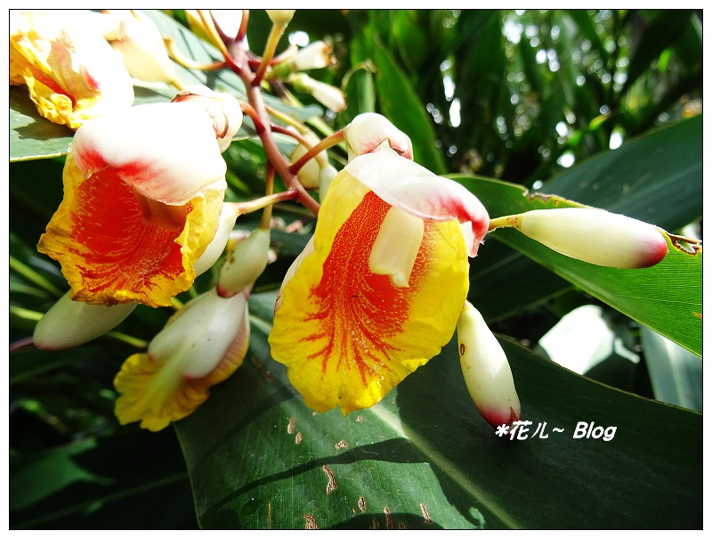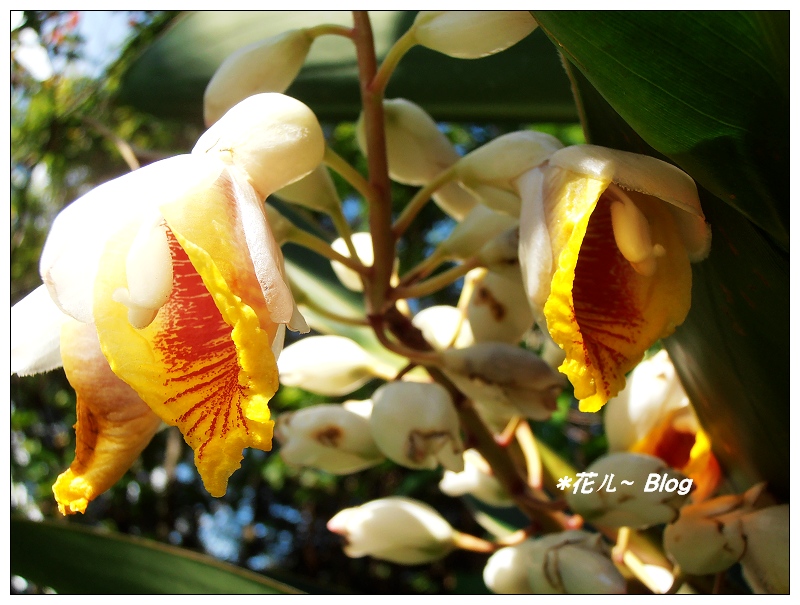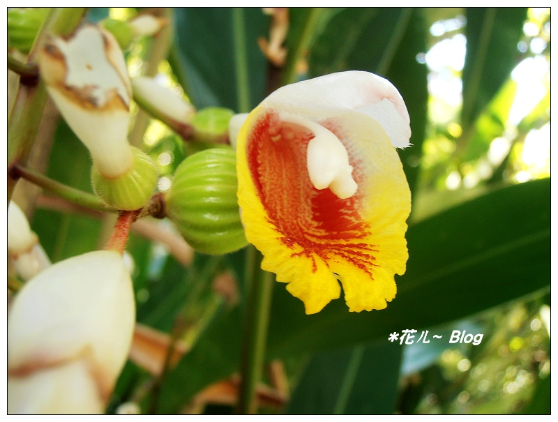 賞花期約5~10月份,全株芳香。 別名稱之豔山薑、玉桃、良姜、虎子花。