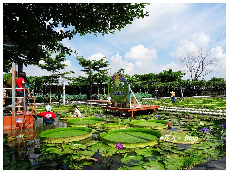 路旁各蓮花生態園區裡都有坐大王蓮的初體驗,付費1人50元限重70公斤,小朋友還滿雀喜。