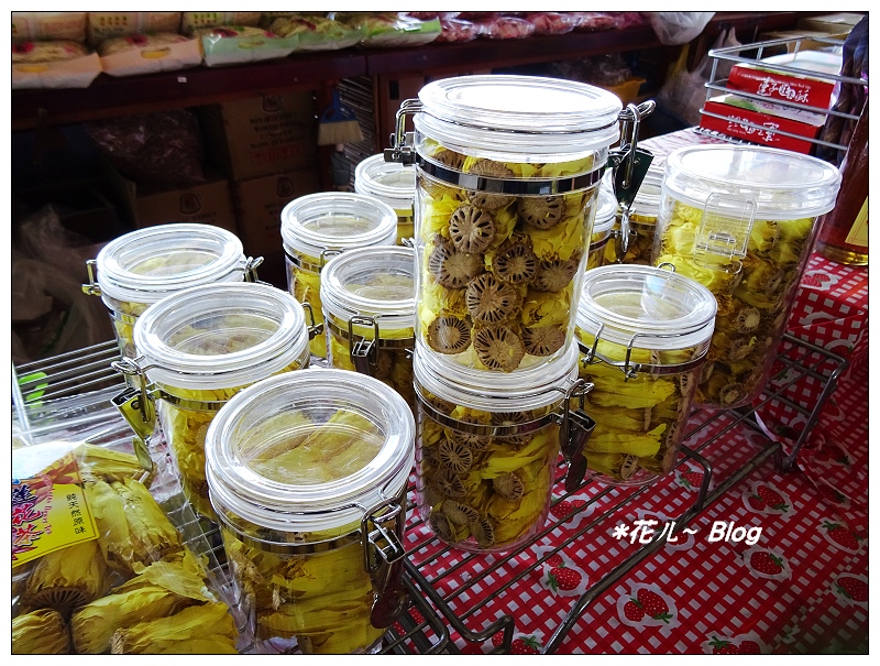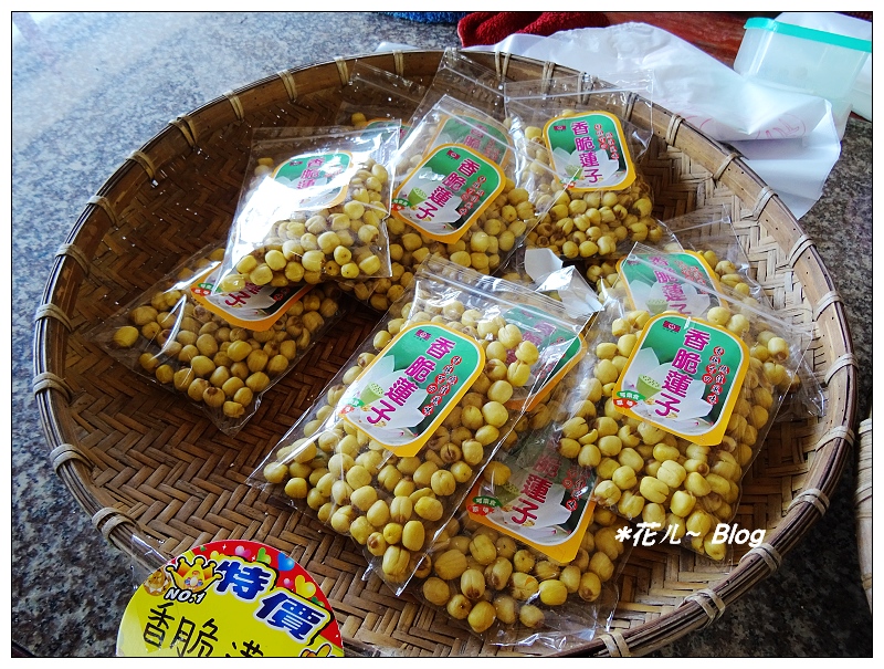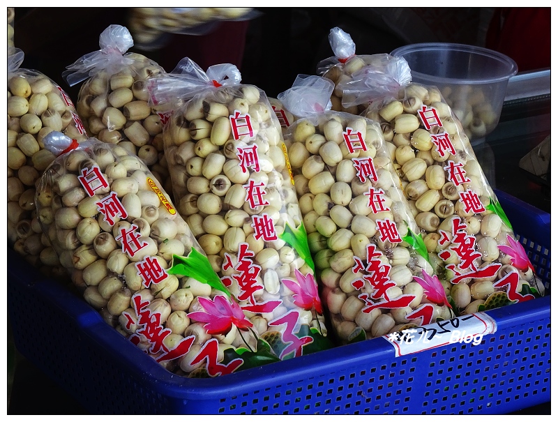 店家販售用蓮子製成零嘴、糕餅等食品。