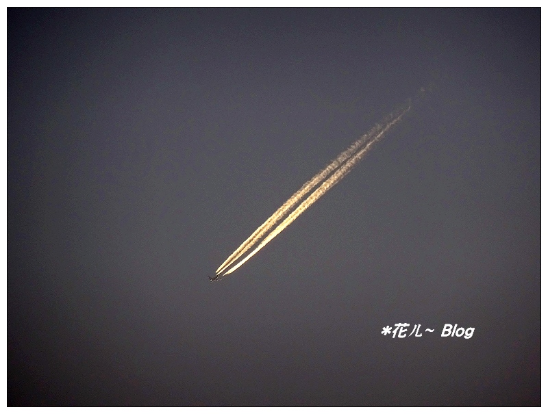 客機於天上畫出三道細長的白煙,為這夕陽暮色作出美麗的 ending。