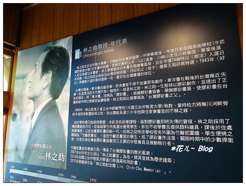 「林之助」教授為台灣膠彩畫之父,曾任教於台中教育大學。