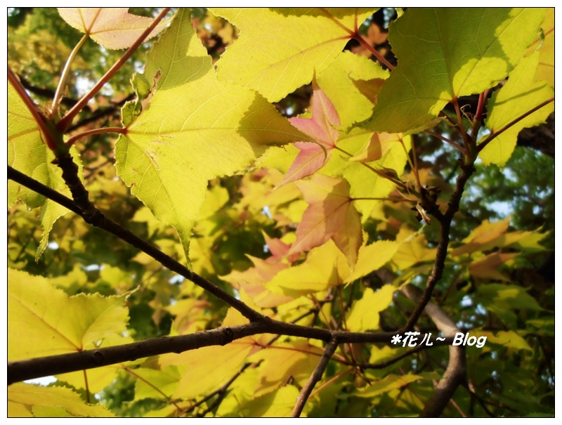 花ㄦ拍楓葉的 綠 猶美於一般的 紅........
