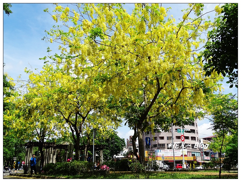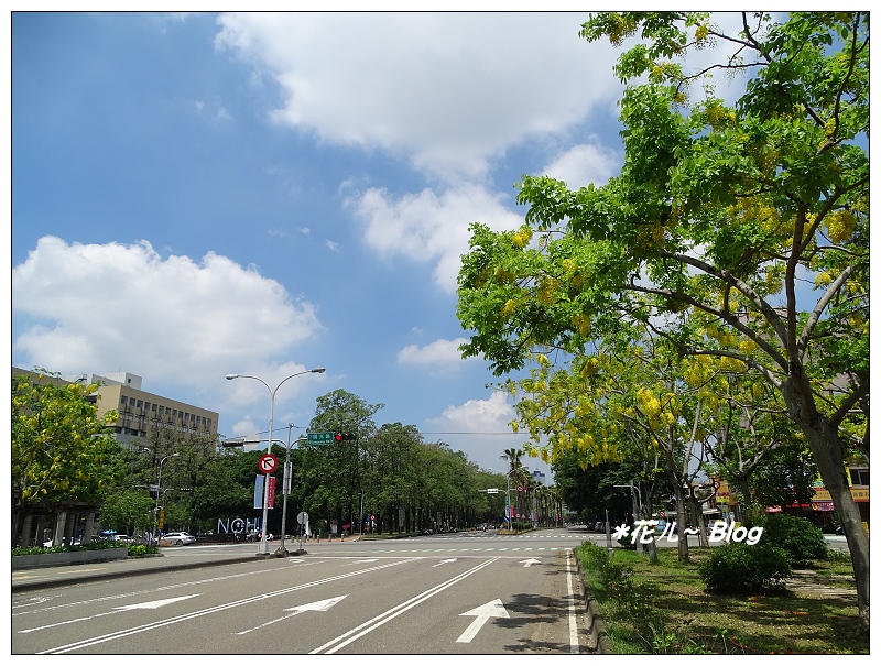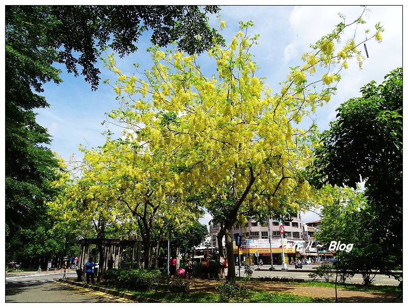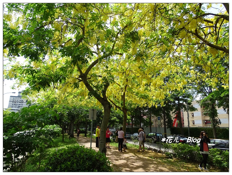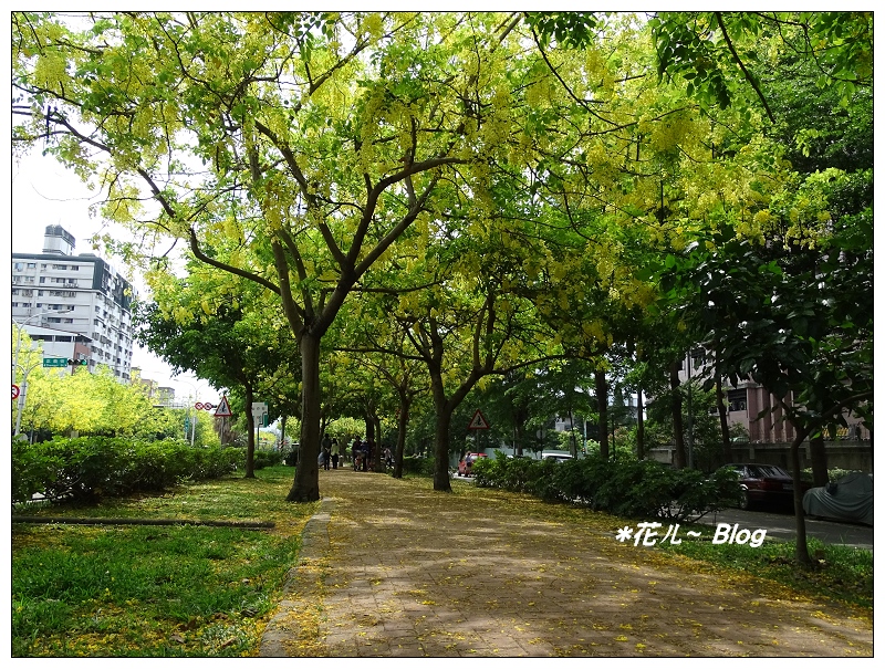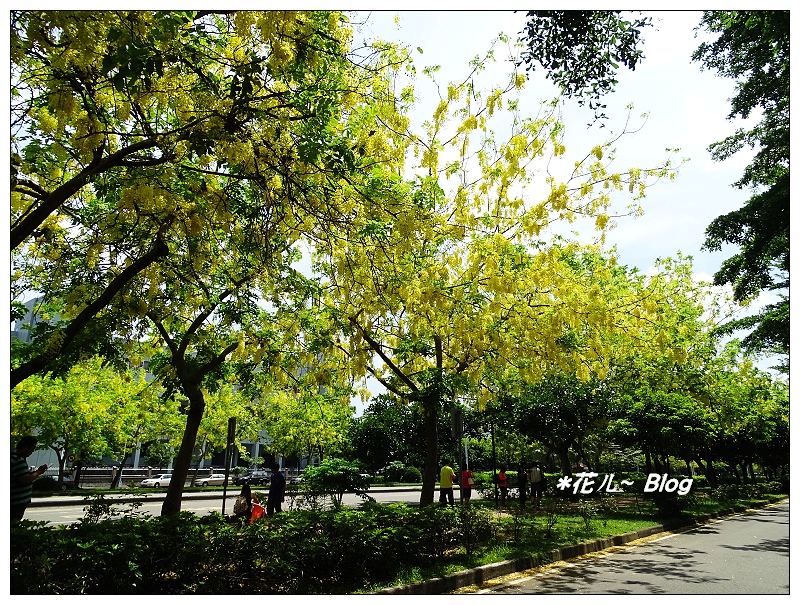 以前去過那一帶也注意到這整排的阿勃勒,美得真像黃金雨瀑般。在國外如英國紐西蘭也都見盛開過,好像還蠻隨遇而安的樹種。