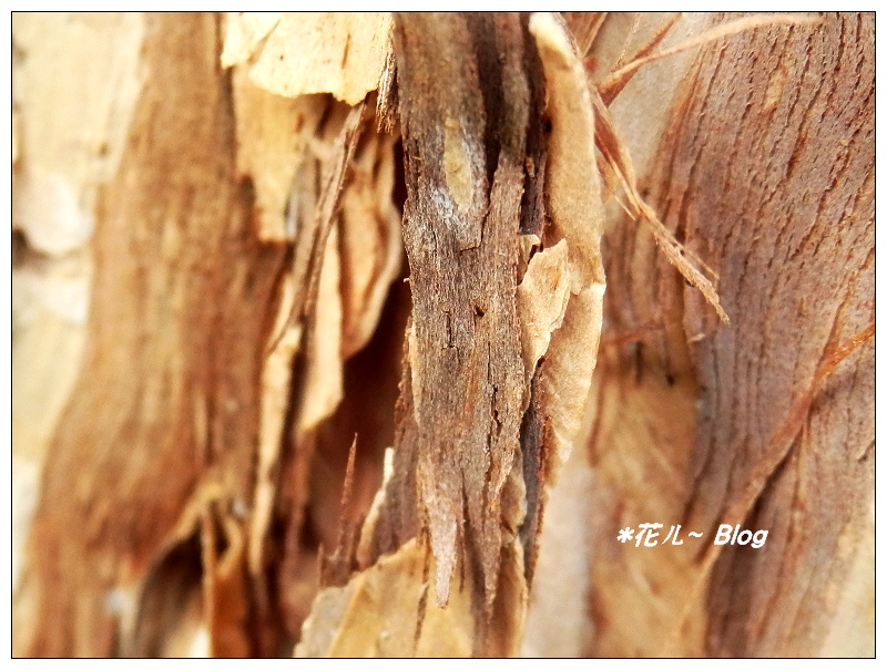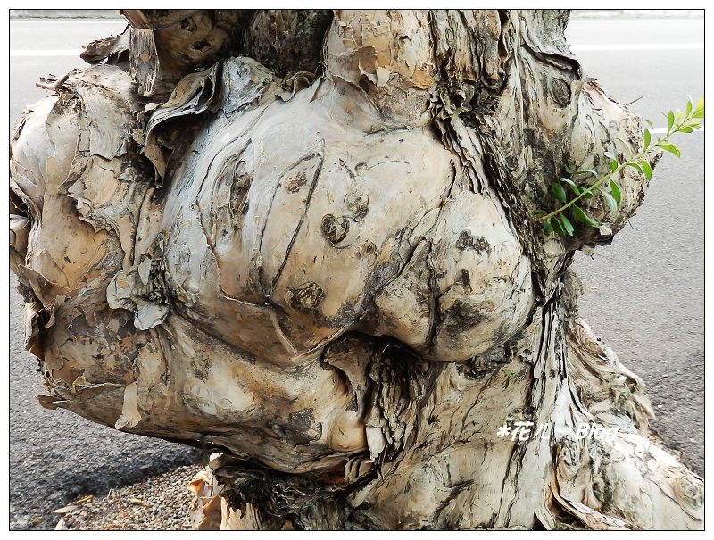 「白千層」灰白的樹皮有鬆軟觸感似如軟墊,自樹幹上層層剝裂因而得名。「白千層」樹幹上那層層剝裂的樹皮可作為造紙的來源!