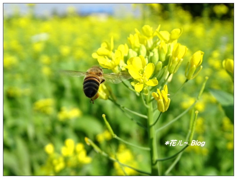 詩云:「油菜花開滿地黃,叢間蝶舞蜜蜂忙;清風吹拂金波湧,飄溢醉人濃郁香。」