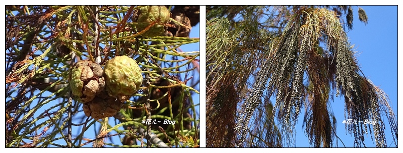 從「泰安國小」遠眺水芋田旁,嫣紅的落羽松。
