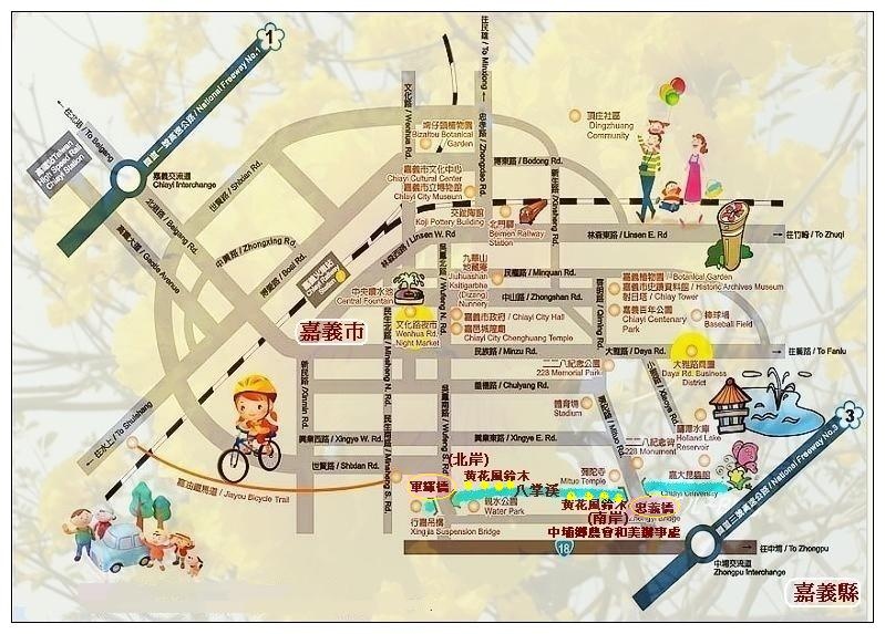 八掌溪河畔「黃花風鈴木」位置圖 :