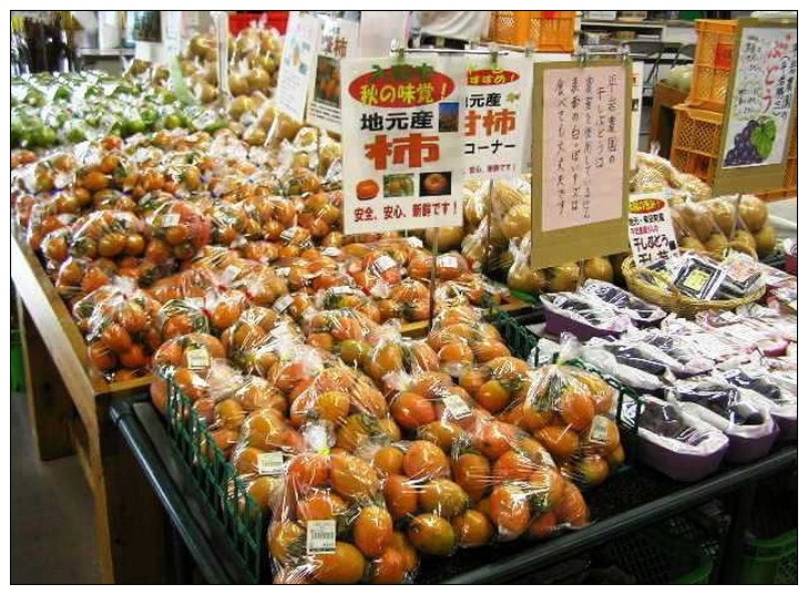 「筆柿」原產地於日本愛知縣,其幸田町休息站「筆柿の里‧幸田」裡販賣各式各樣的柿品