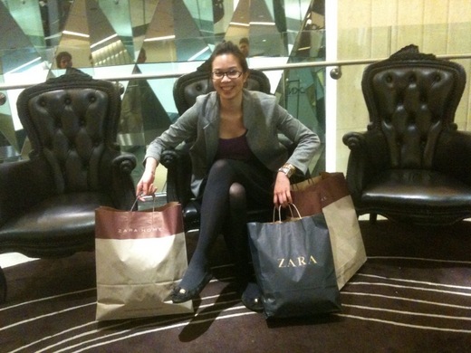 用完餐後,立即展開Shopping任務,幫Coco採買寢具,她指名要Zara花系列,精挑細選後.......如她所願,選了一組淡紫色花床罩,百貨公司也近十點,關門時間(倫敦商店比其他城市營業時間長)