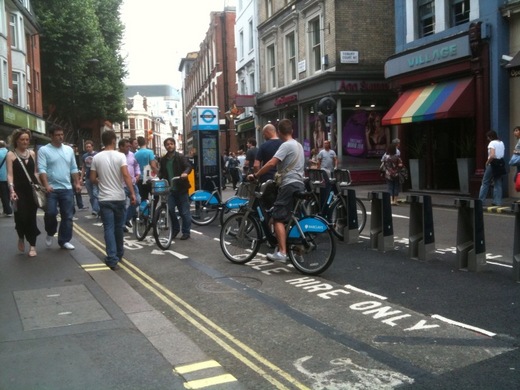 附近街道,跟法國一樣,新設了腳踏車,投幣租賃區,方便旅客使用,奇怪的是.......怎一眼望去全是''猛男''在租用