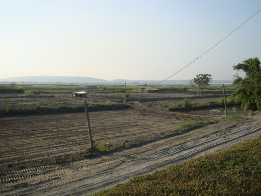 為了順便運動,所以以單車當作交通工具;騎了好長一段路,總算找到同事口中說的那個堤防,只是當我騎上堤防之後才發現,這個堤防跟我印象中的似乎不太一樣,因為,離〝水〞的地方還很〝長〞,不過,不知道是不是因為週六的緣故,倒是真的沒什麼車子經過,讓我此刻享受到難得的寧靜。