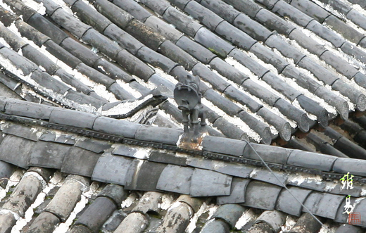 這其實是當地的一種民俗,在滇西北地區的人們待整座屋子修葺妥,會舉行隆重的上樑、合壟儀式,在壟口上安置最後一片瓦~~「瓦貓」。牠是當地民居屋頂上的守護神、鎮房之寶。一片瓦,化為貓形的瓦,獨自站在屋頂高處,扮演著守候這片家園的重要任務。