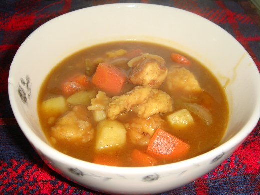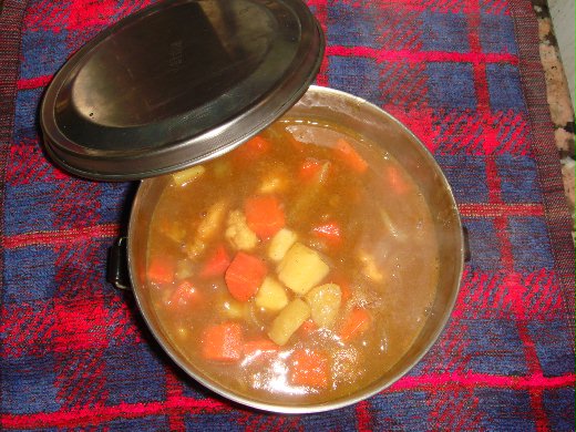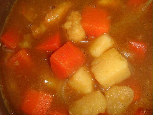 倒也不是第一次煮這道料理,平常總是隨便丟個咖哩塊,外加基本食材─馬鈴薯以及紅蘿蔔後,攪一攪,拌一拌,滋味倒也不錯。