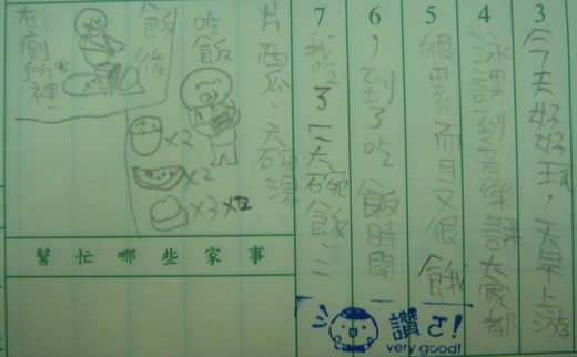 這一篇小日記非常好笑!所敘述的就是游泳那天,學生把營養午餐的飯菜吃