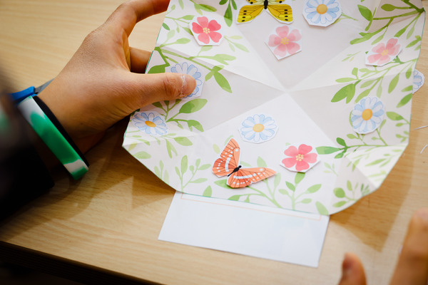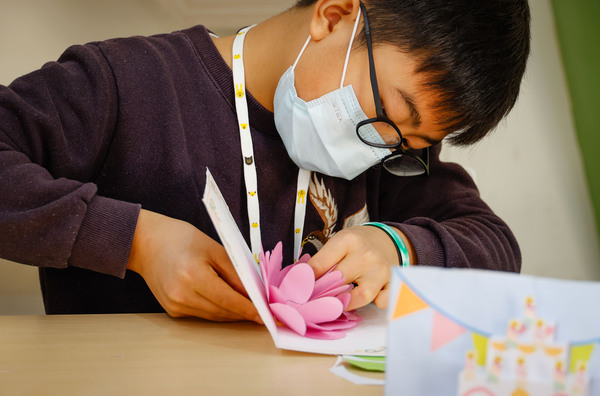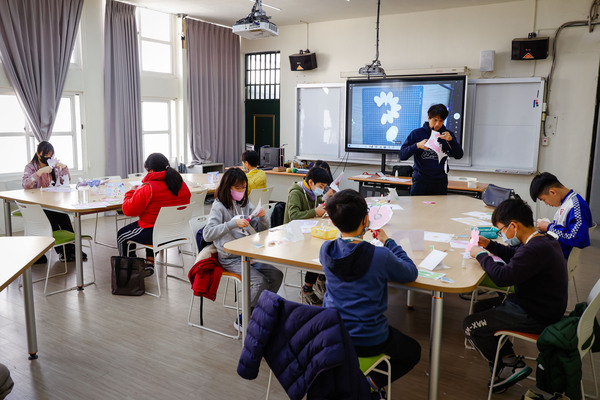 看著學生從不會到呈現立體書花花世界,不僅培養手腦並用專注力,還有設計美學藏其中。睦謙說:「好酷好有成就感。」昱期說:「我要把紅花拿給屏東的阿嬤,祝她新年快樂。」短短時間,大家體驗到摺紙藝術及自己的神奇,寒假一開始,就綻放學習的美麗。