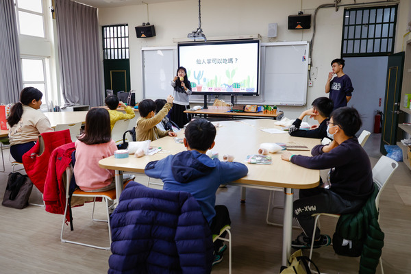 首先堯慧老師介紹各樣的多肉植物,還問大家仙人掌可以吃嗎?講到吃的學生們話匣子就開了,「冰淇淋」、「沙拉」⋯紛紛舉手發表自己經驗。堯慧老師還加碼介紹參加火龍果盛宴,製成蛋餅皮、粉棵⋯我看大家肚子都在叫了啦!