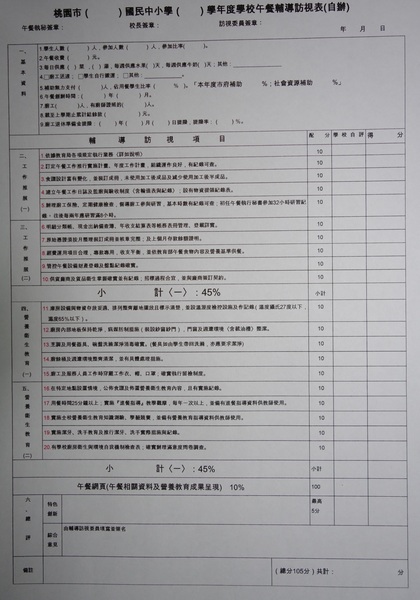 桃園市00區00國民中小學000學年度學校午餐評鑑報告-(自辦學校)