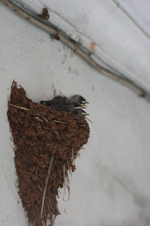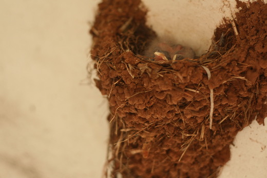 5月中 生下了四支小燕子 眼睛都未掙開 母燕窩在旁替寶貝們取暖